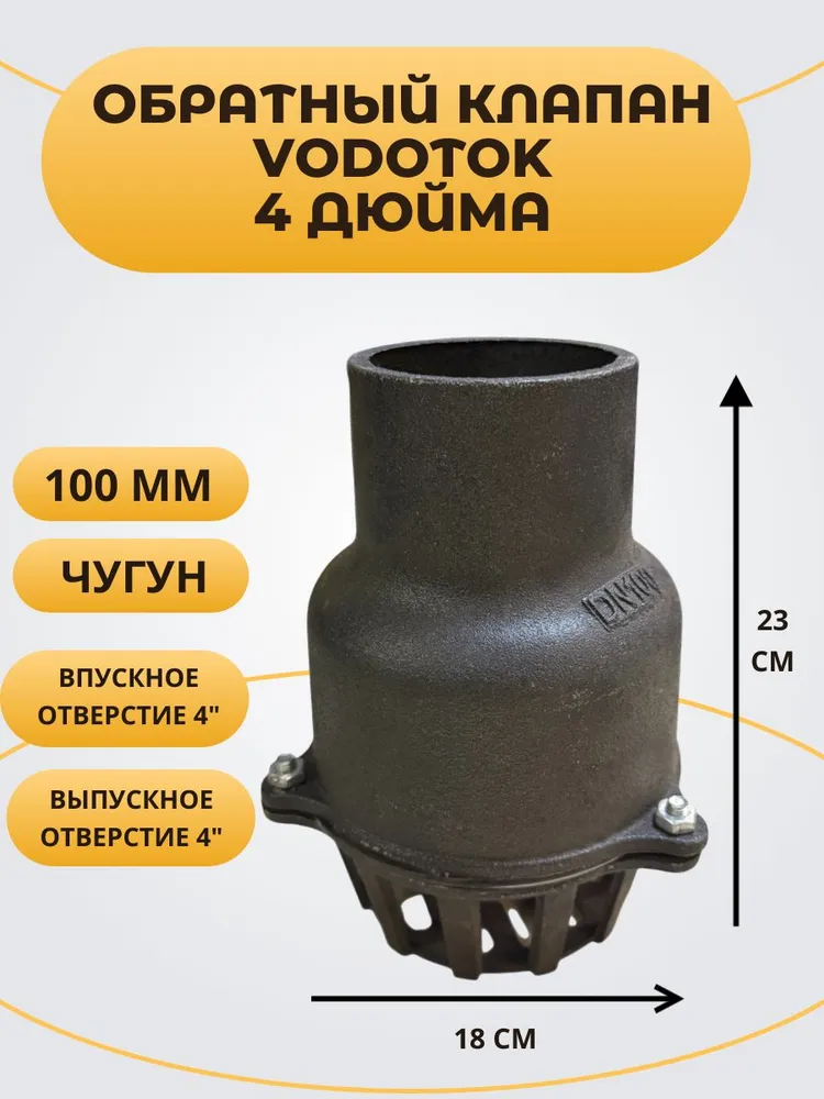 Обратный клапан погружной "Vodotok" 4", D100 мм, ЧУГУН