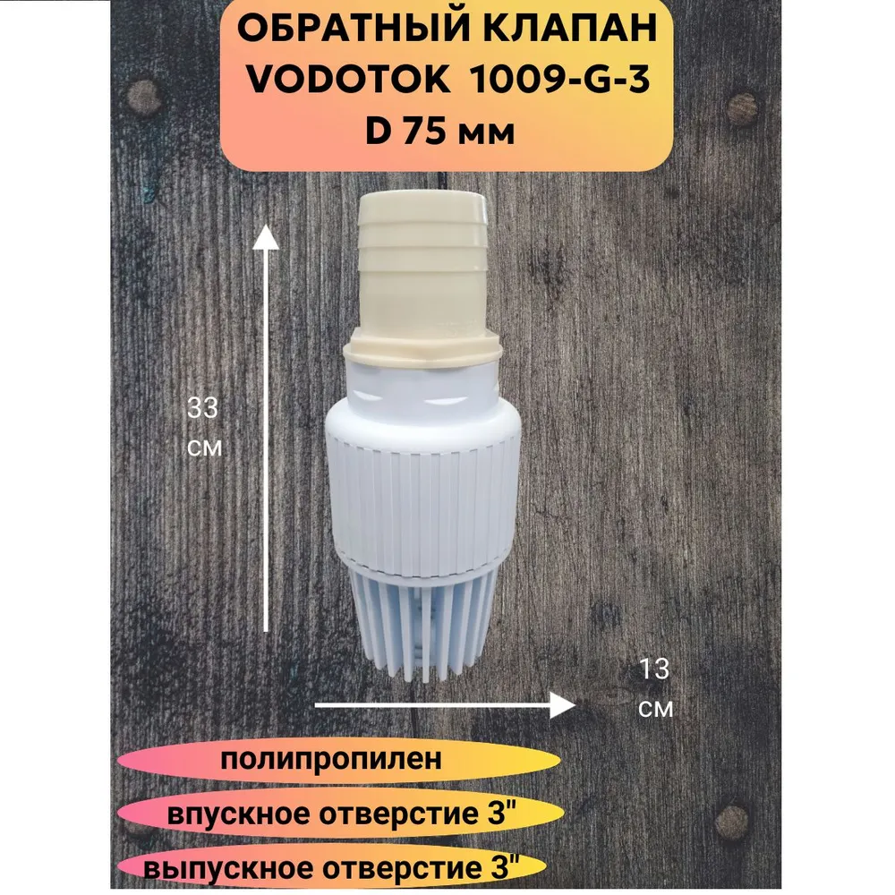 Обратный клапан погружной D 75 мм "Vodotok" модель 1009-G-3" новый полипропиленовый материал.