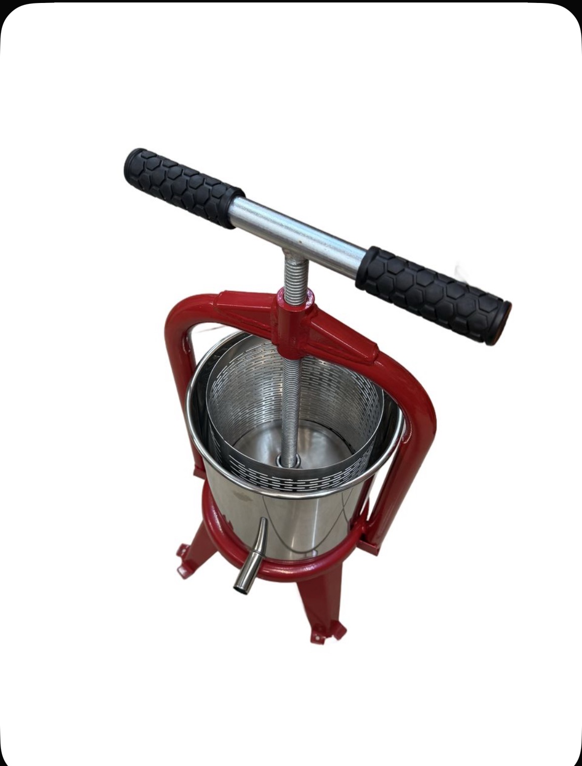Вращение рычага приводит в движение давящую часть пресса. Сок вытекает через мелкоячеистые стенки бункера (сетка из нержавейки) и попадает в поддон, а оттуда через сливной желоб - в ведро или другую тару. Для дополнительной фильтрации продукты отжимают через фильтр-мешок (в комплекте). Его можно заменить любым подходящим мешком из натуральной ткани.