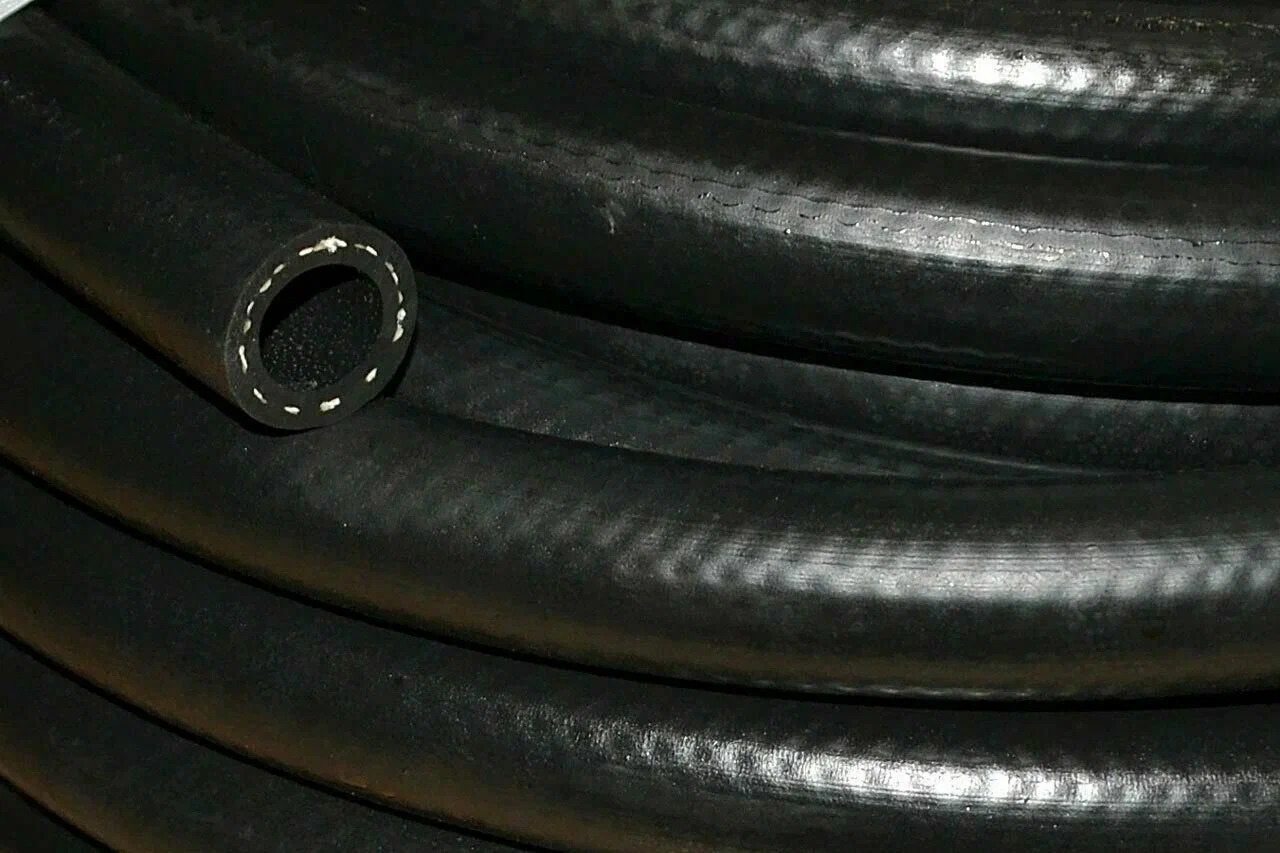 Шланг резиновый, армированный (кордовый) для полива, толстостенный. Сохраняет свою форму благодаря высококачественному текстильному армированию.